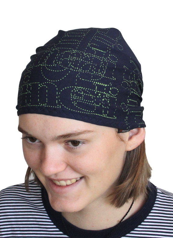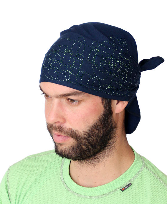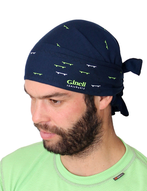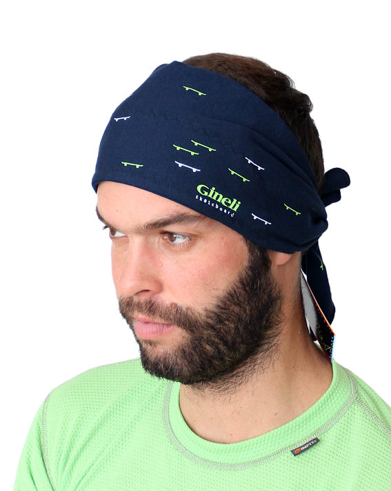 Vázací šátek Gineli je určen na adrenalinové sporty. Gineli = original free design = boards and ... party and andrenalin. Šátek má trojúhelníkový tvar a je určen na hlavu nebo i na krk. Je vyroben z elastického úpletu v kombinaci s funkční pleteninou obsahující Outlast®, která je kontaktní vrstvou. Šátek Gineli vhodný pro všechny outdoorové i halové aktivity v teplém i chladném počasí. Šátek je dobře tvarově stálý. Materiály, které jsme na šátek Gineli použili, vám zajistí velmi příjemný pocit při nošení: bavlna v úpletu příjemný omak a elastan dobré přizpůsobení šátku každému tvaru hlavy. Funkční struktura pleteniny na čele zajistí odvod vlhkosti a Outlast v ní obsažený vyrovnávání teploty.  Obsah elastanu v úpletu je v rozsahu 6 - 8%, přesně tolik, aby byl dostatečně pružný , ale na hlavě neškrtil.